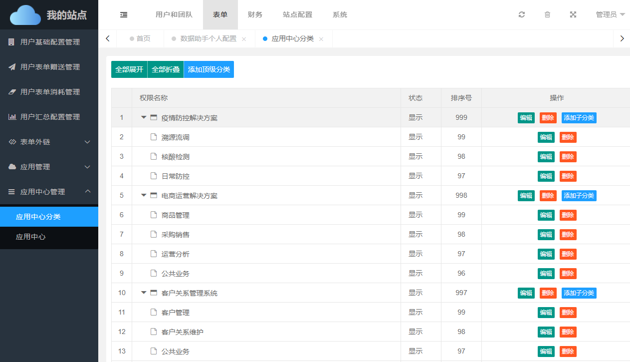 应用中心分类可以自由进行增加、修改、删除,并且支持二级子分类,方便管理员对应用中心的个性化设置。