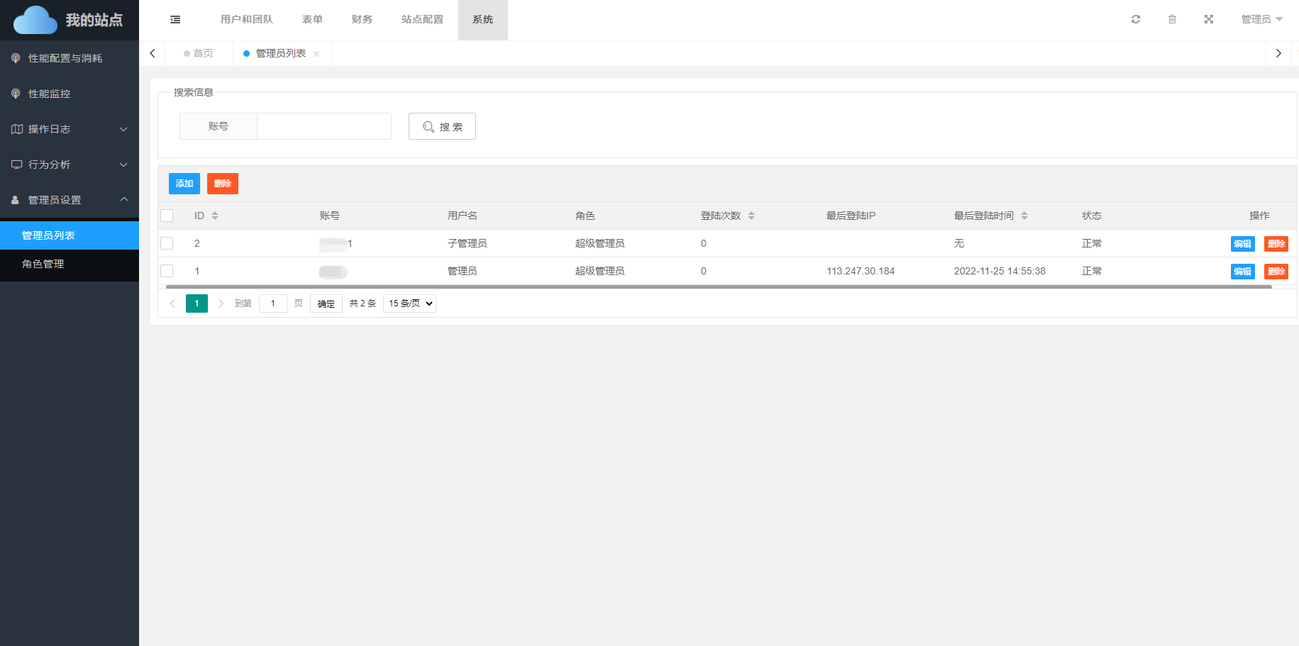 管理员列表,可以添加对应权限的管理员。
