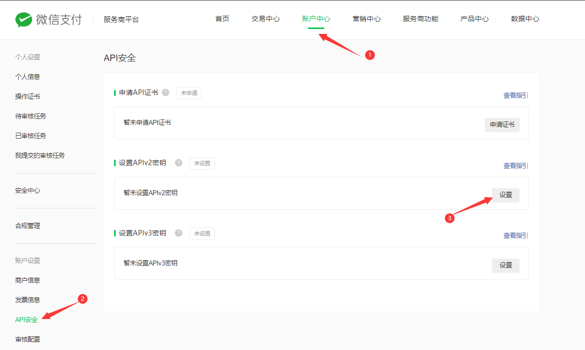 3.3、设置APIV2密钥具体操作请自行查看旁边的指引