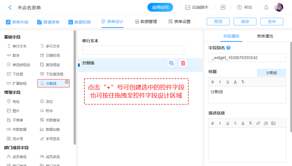 | 字段创建、表单预览 |