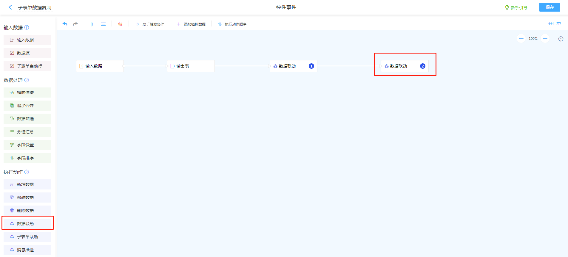 1. 重复[步骤1-4],将子表单内需要联动的控件一次设置完成。