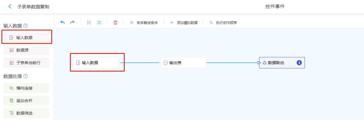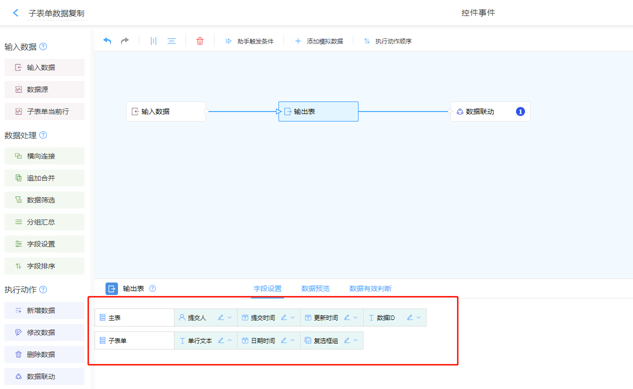 1. 输入数据选择输入数据,并讲子表单与普通字段进行区分。