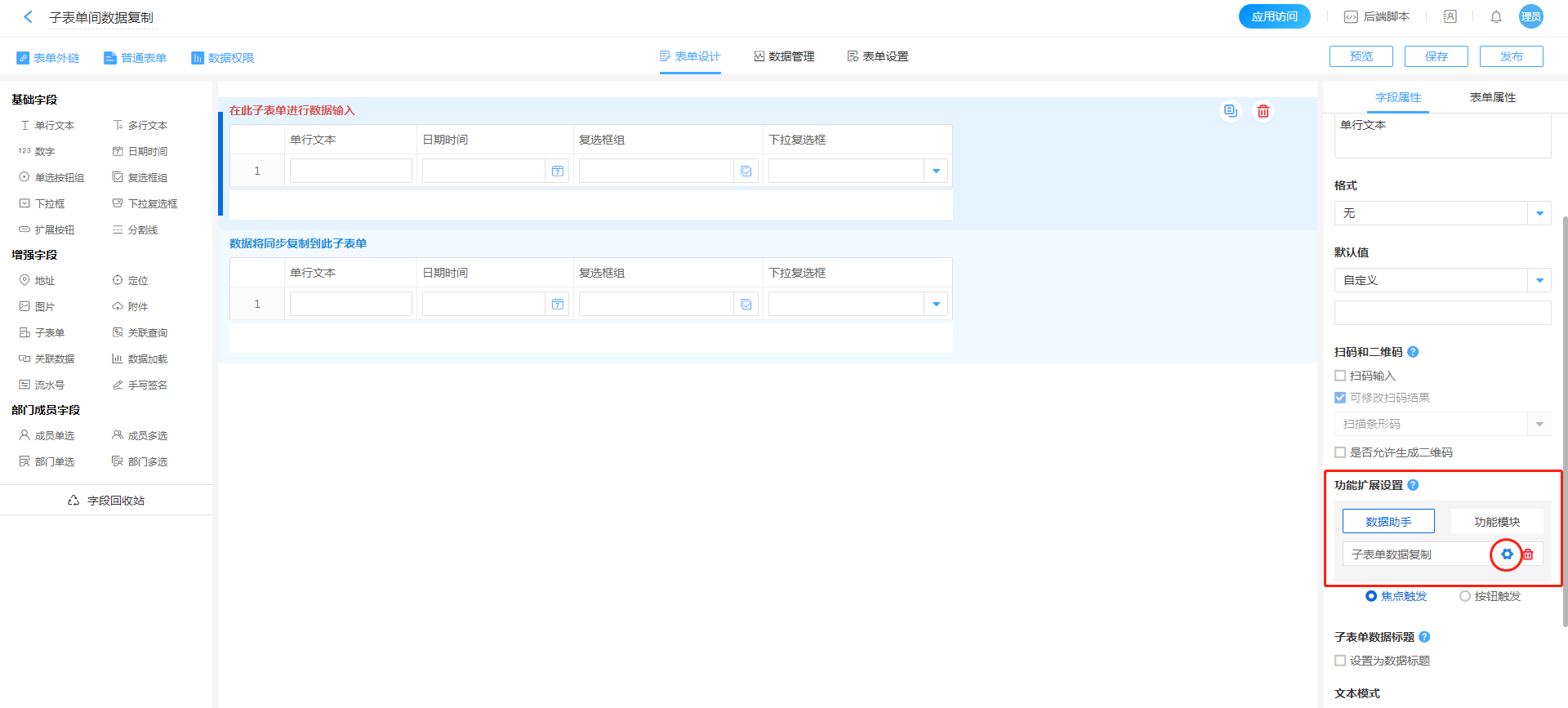 • 数据助手子表单
