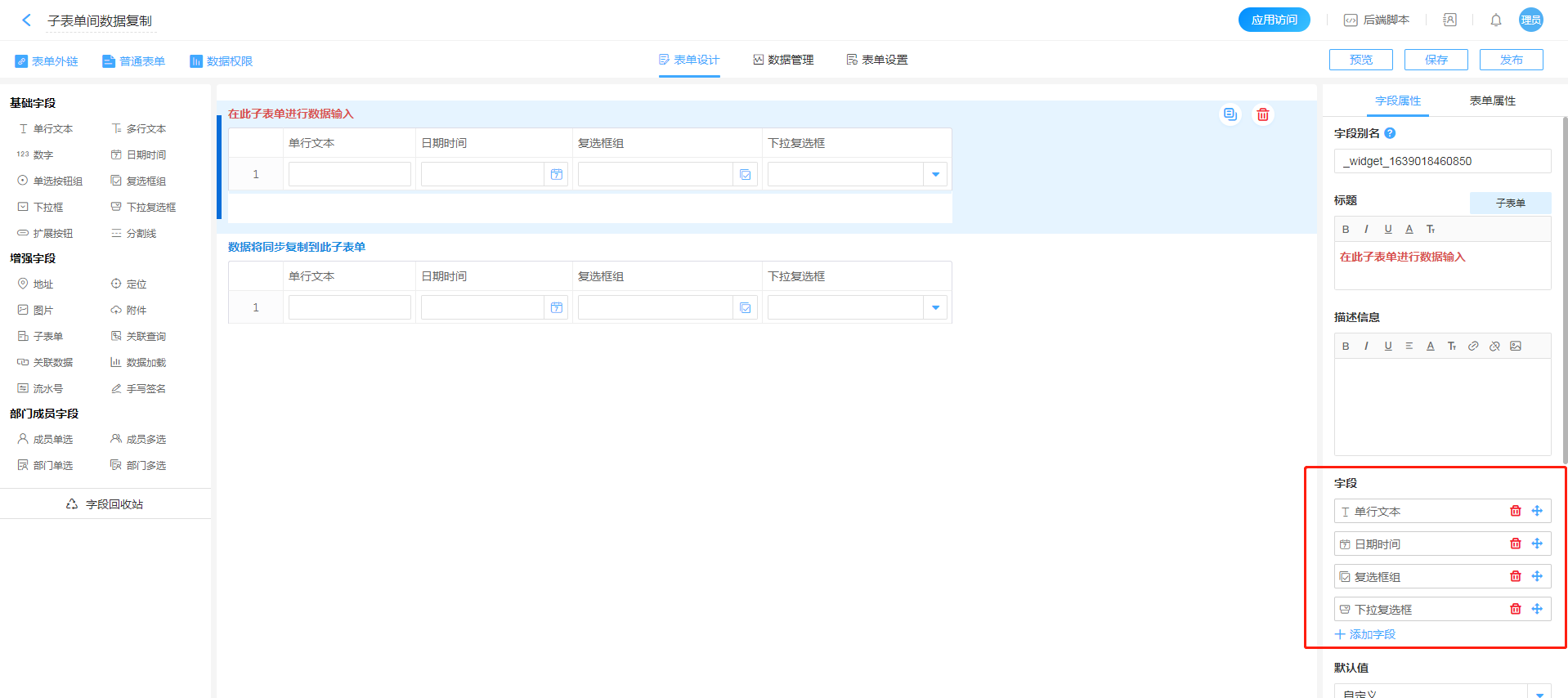 • 普通字段添加到子表单