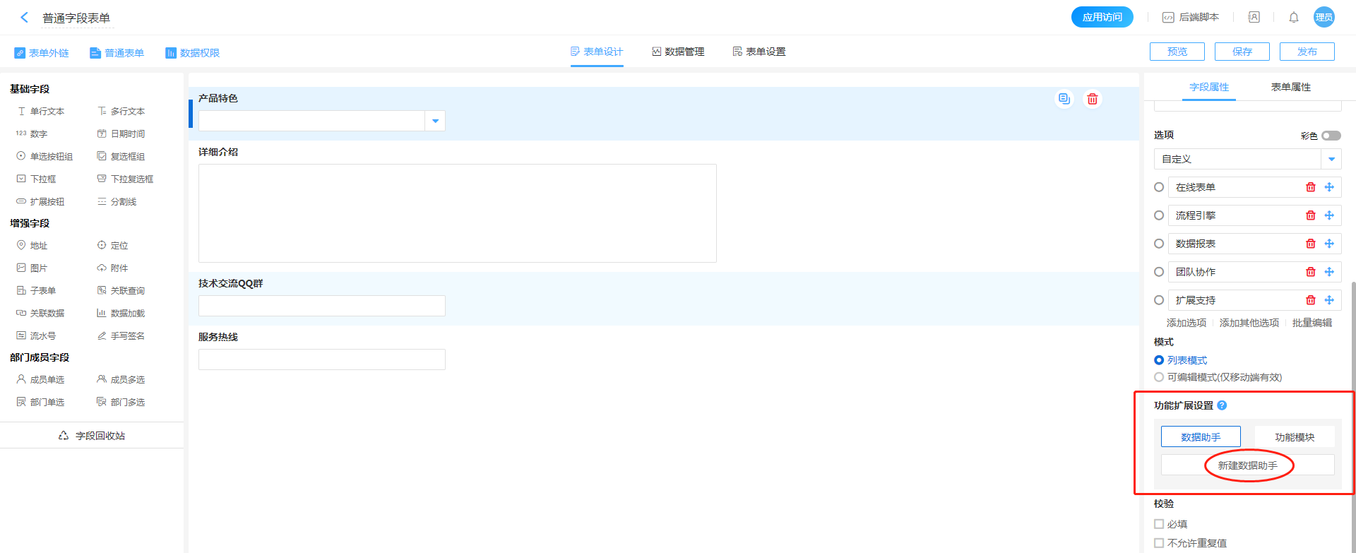 • 数据助手子表单