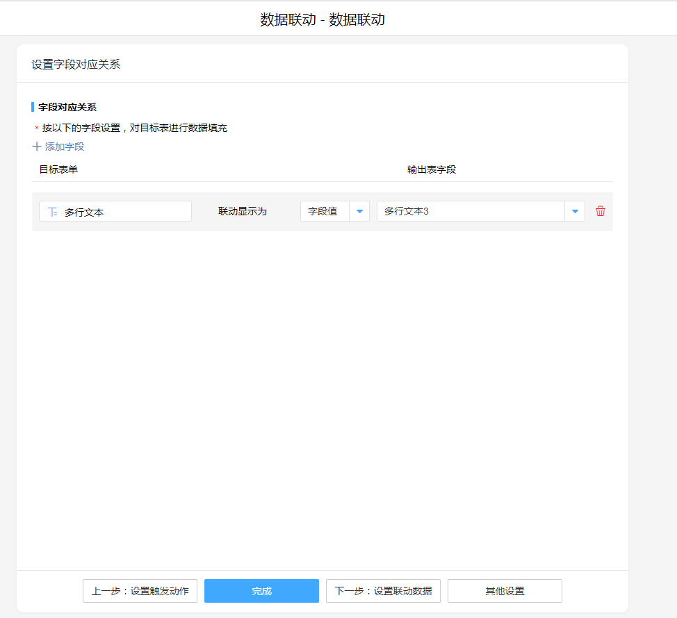数据关联,将表单2与表单3字段进行联动。
