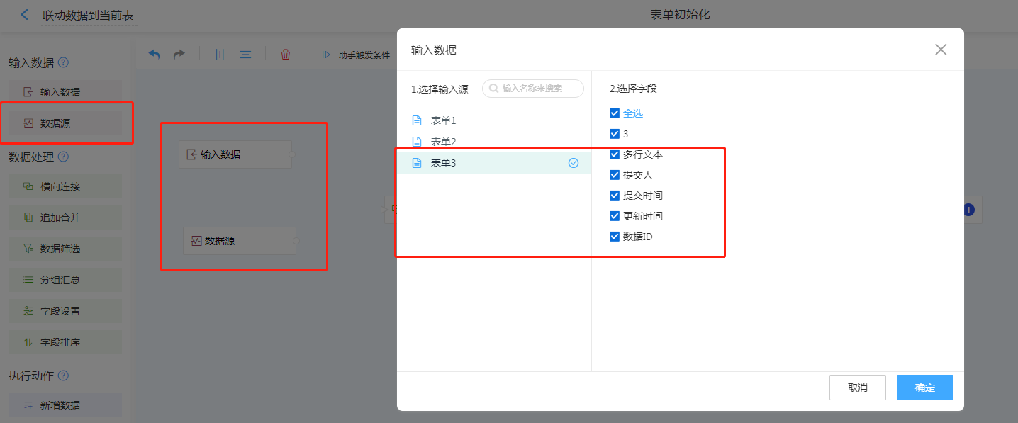 输入数据与数据源(选择表单3)。