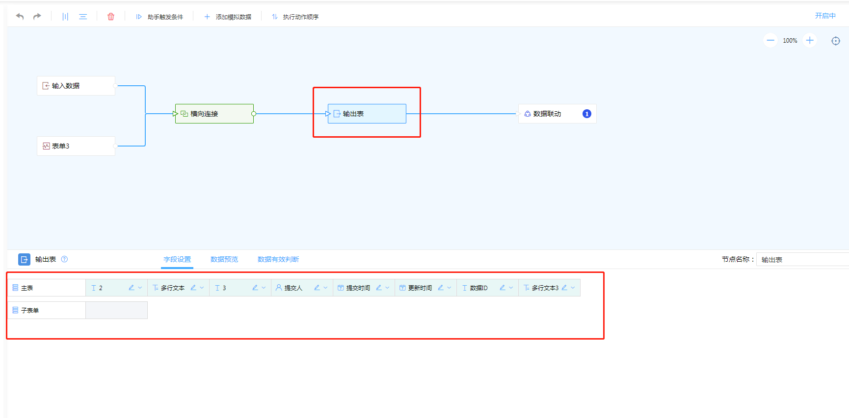 - 子表单字段拆分,若需要联动子表单数据,则需要进行数据拆分,将子表单字段与普通字段进行分离。