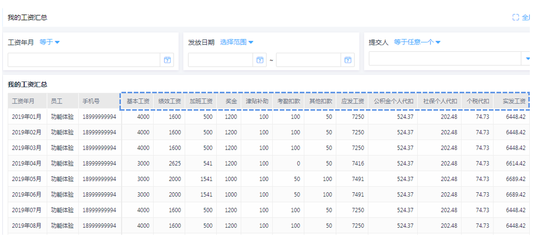 核算的结果通过工资条的形式进行整理发放,员工对于工资情况明细一目了然,如有问题也可有针对性的进行反馈。