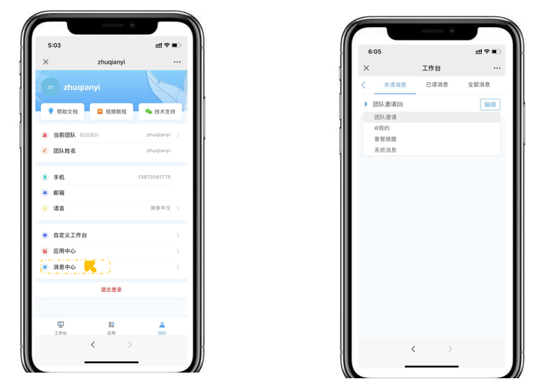 进入消息中心可以便捷地接收来自团队的消息通知,点击编辑键可以批量操作已读或者删除消息。