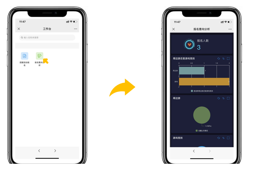 在移动端也支持报表数据查看,不同的图表纵向排列方便阅读。