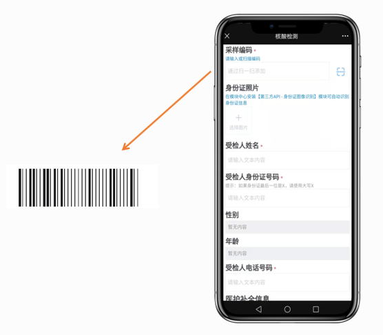 通过外链二维码搜集检测人员的身份信息,受检人员自行填写个人信息身份 通过表单数据的后台管理统计受检人员的身份信息