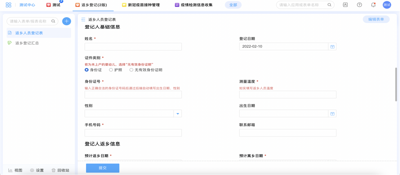 疫情防控行业领域能力展示——返乡登记