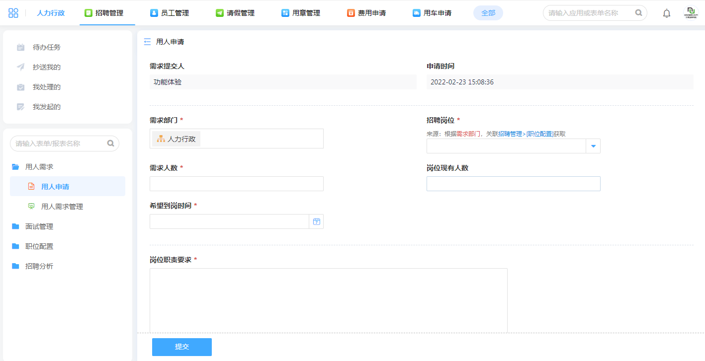 1.在线提交用人申请