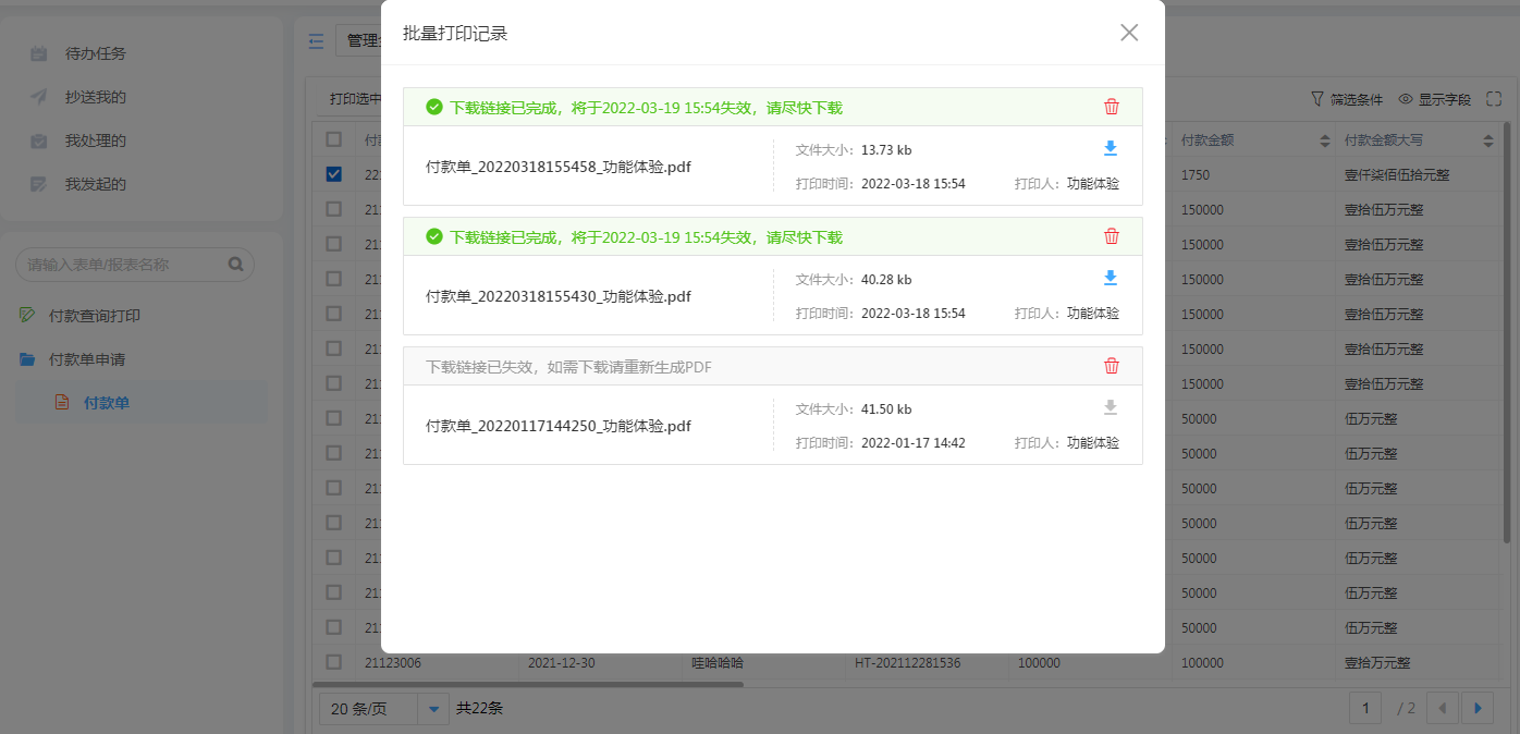 用于记录进销存付款金额与展示并且提供付款单打印模板。