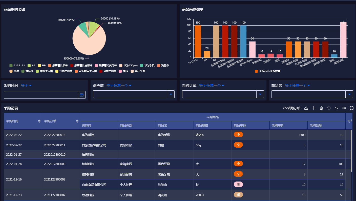 1.采购记录可视化查询