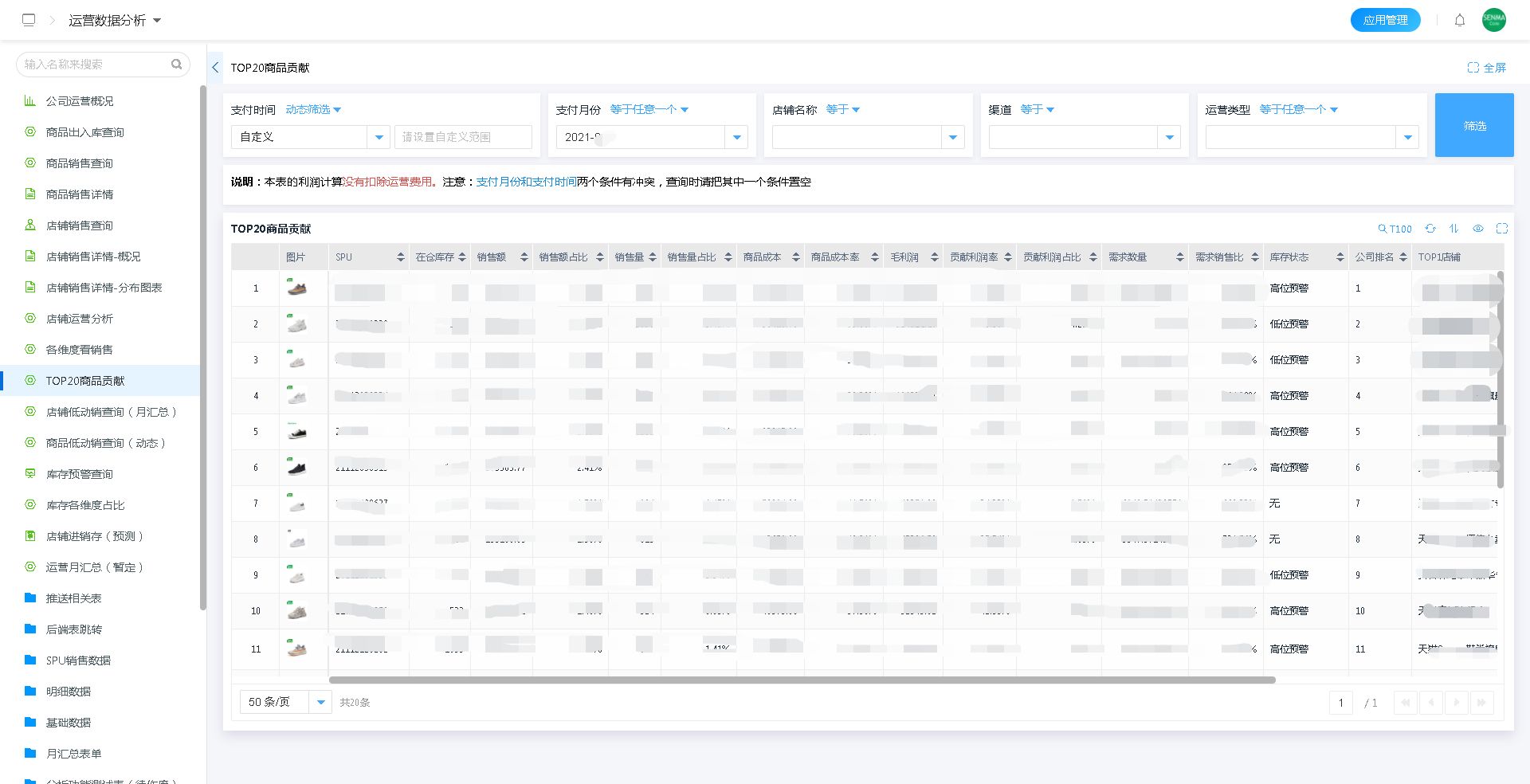 支持将千万销售数据汇总转化为可视化图形报表,将每个店铺的销售情况,通过清晰的图表,非常直观的展示出来。
