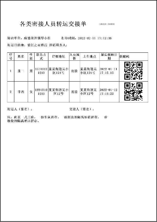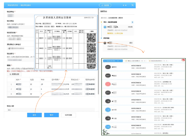 隔离点管理人员通过扫描转运单上的二维码联动查询隔离人员信息进行登记。