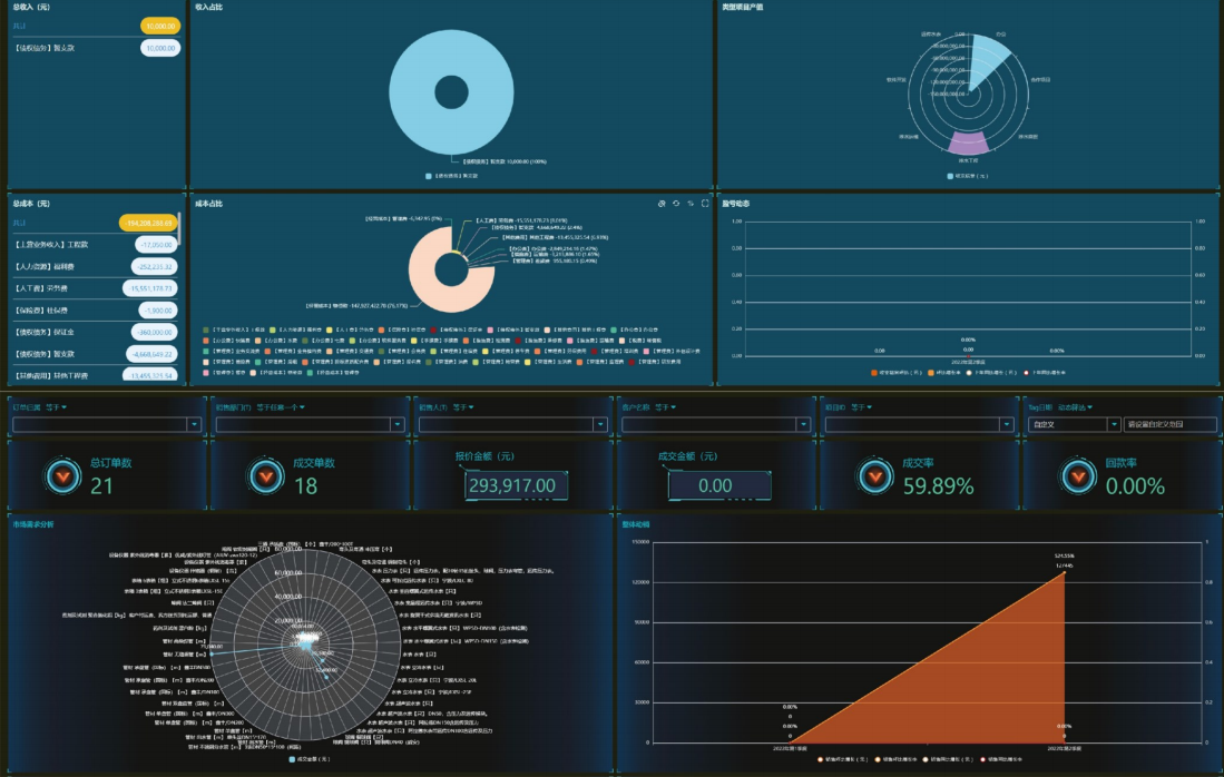 3.工知云的报表分析功能,可对各类型业务进行数据管理、统计、分析,快速生成多维度可视化数据分析,同时支持自定义报表外观,实现报表展示多样化。