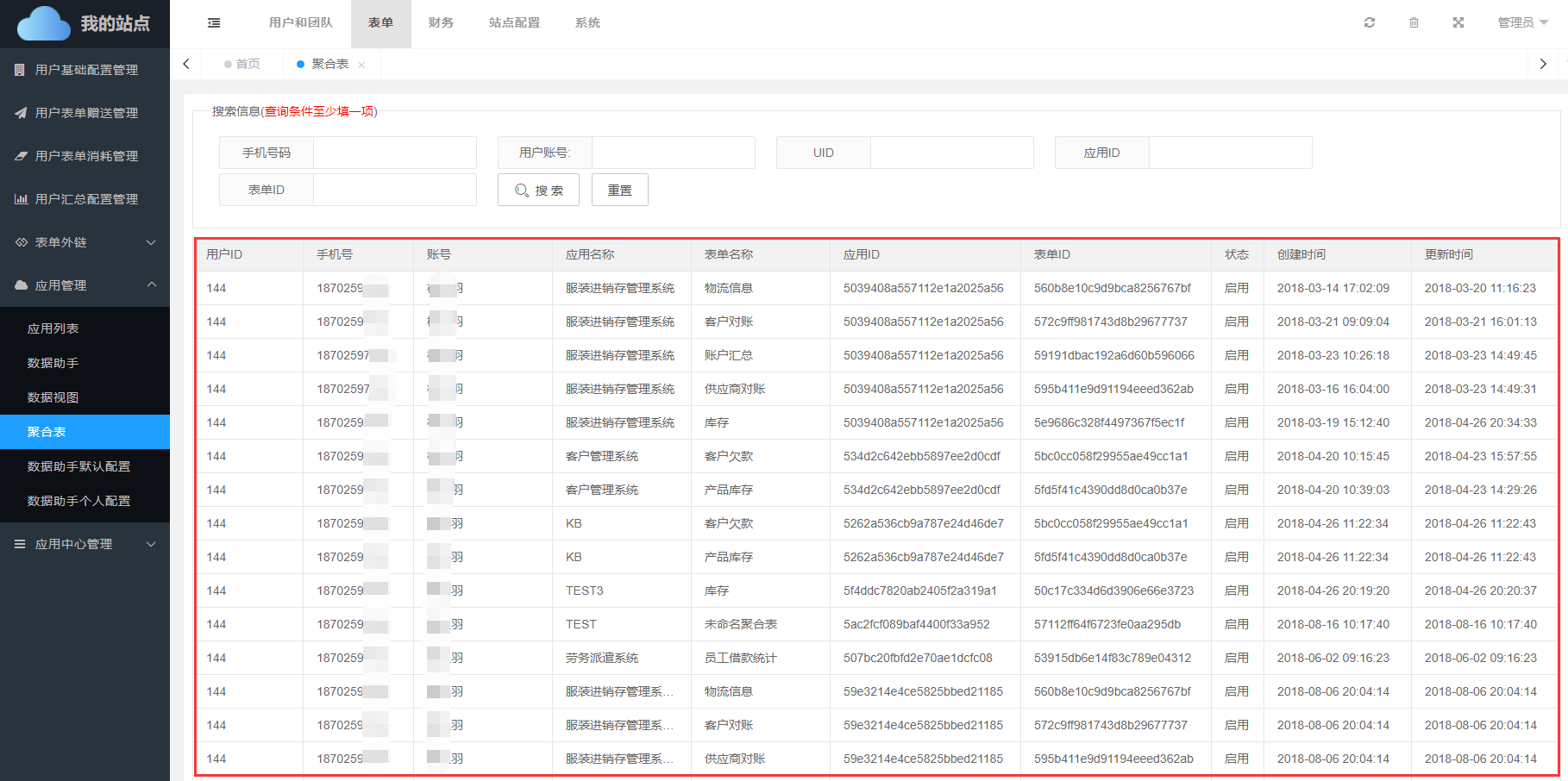手机号:聚合表所属用户手机号