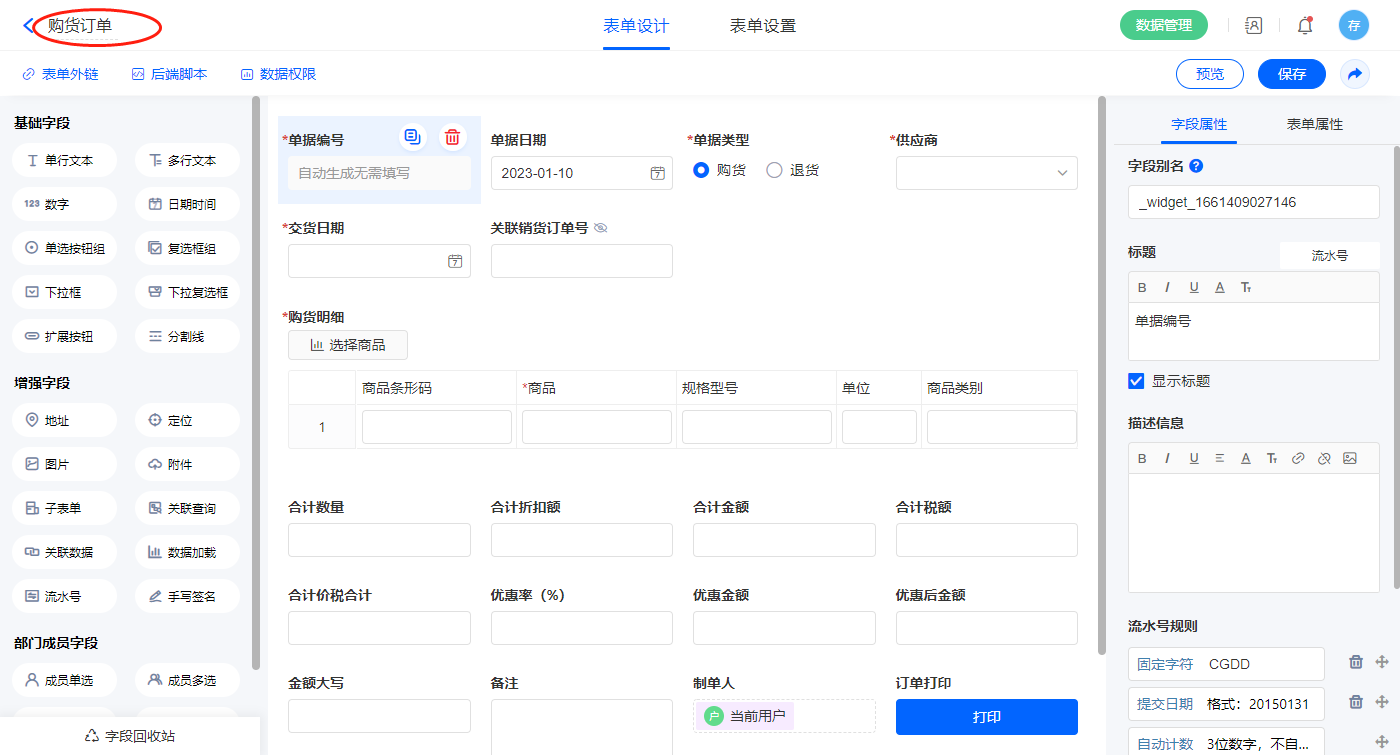 该表设置见云进销存-采购管理表单【其他支出单】字段及表单属性设置章节介绍;