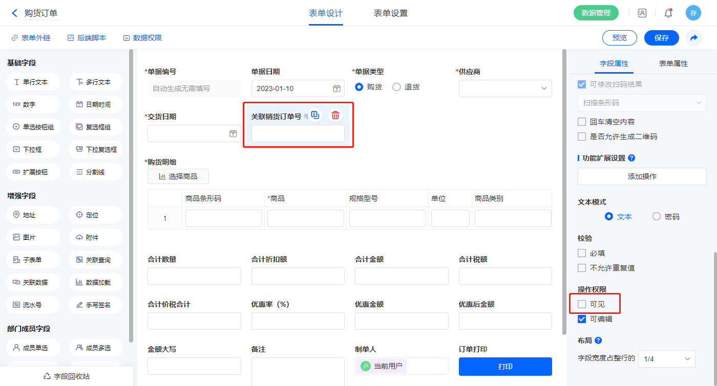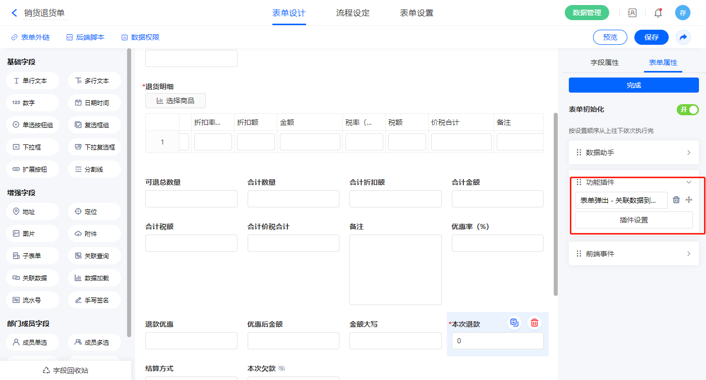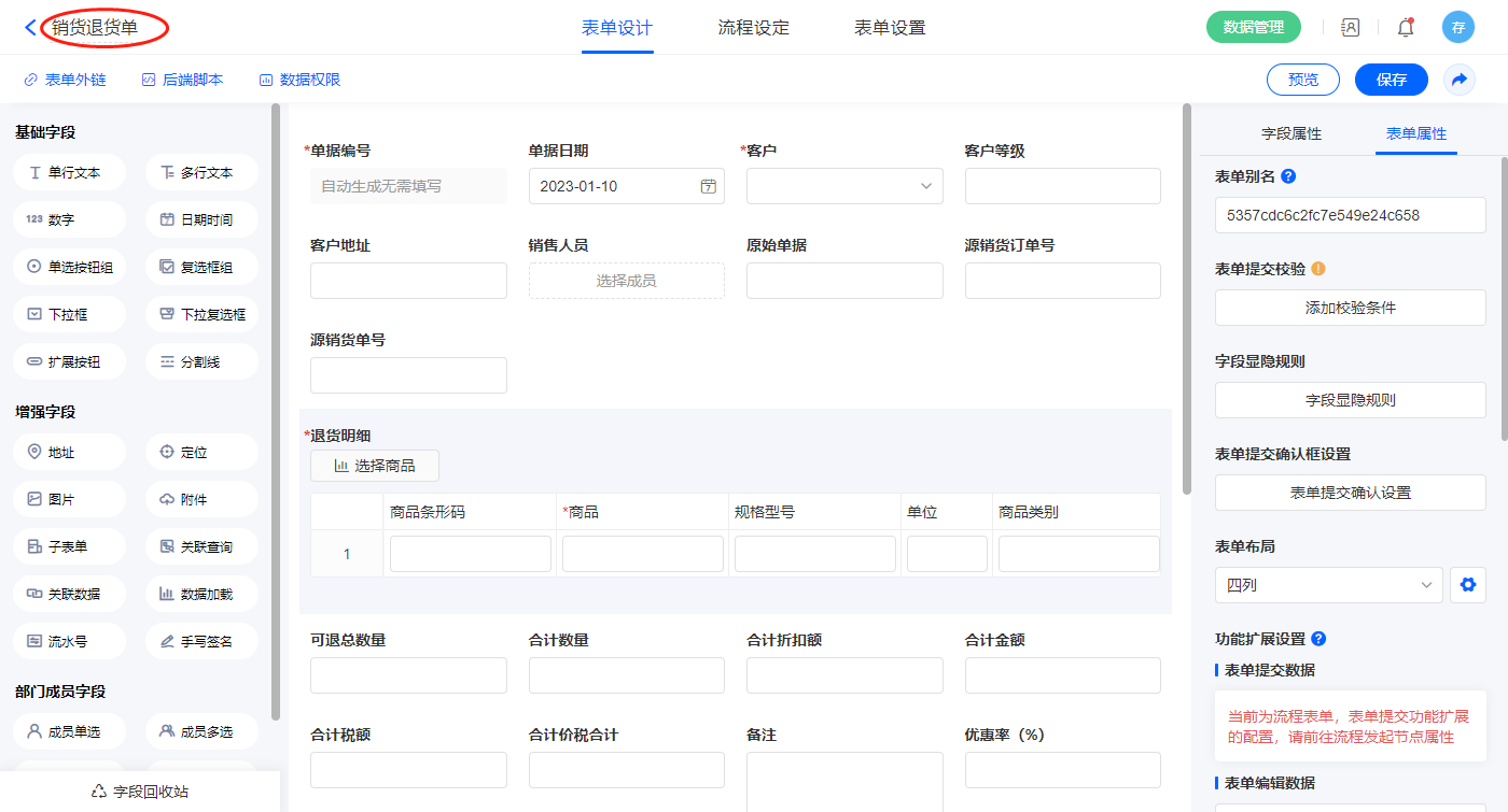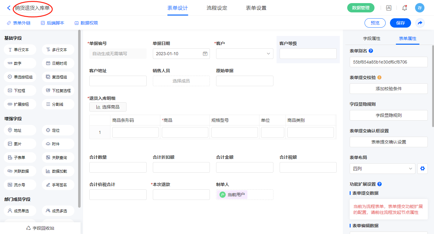 - 2.5、表单【销货退货单】字段及表单属性设置