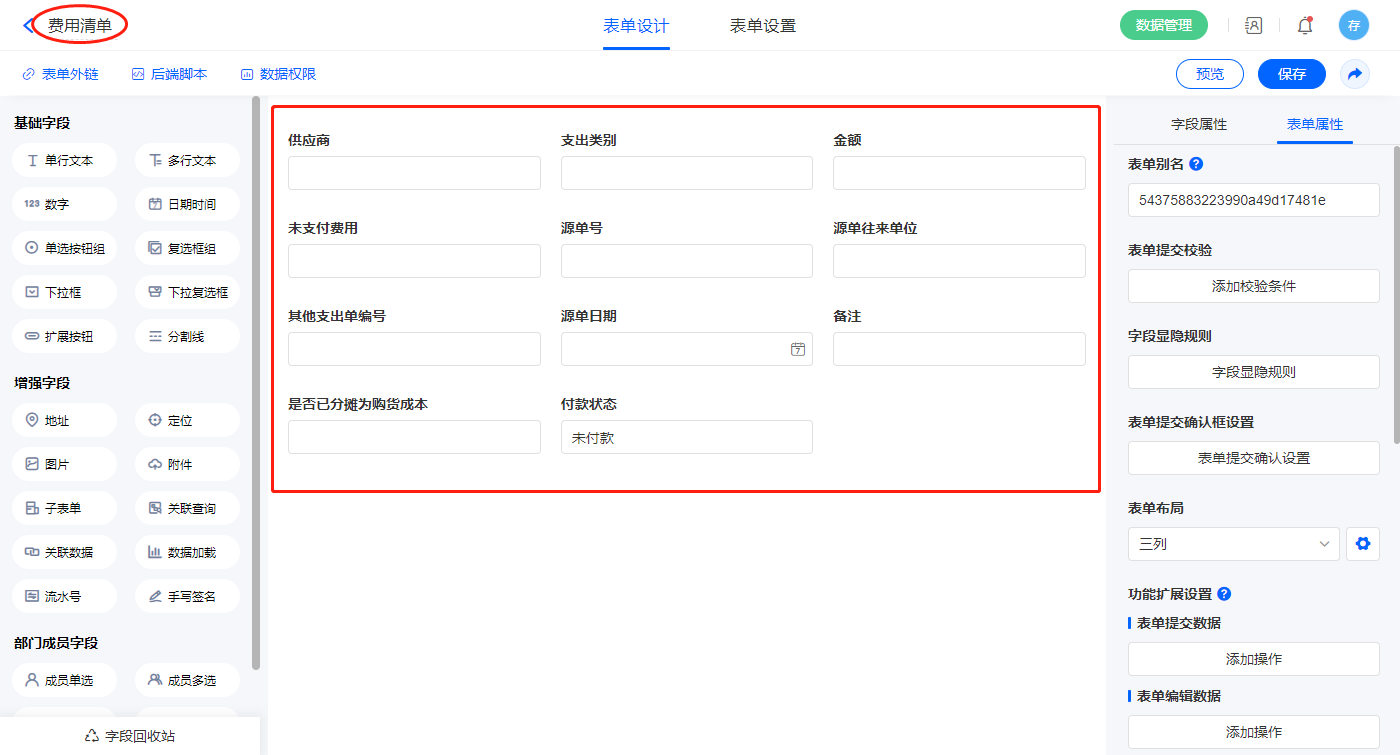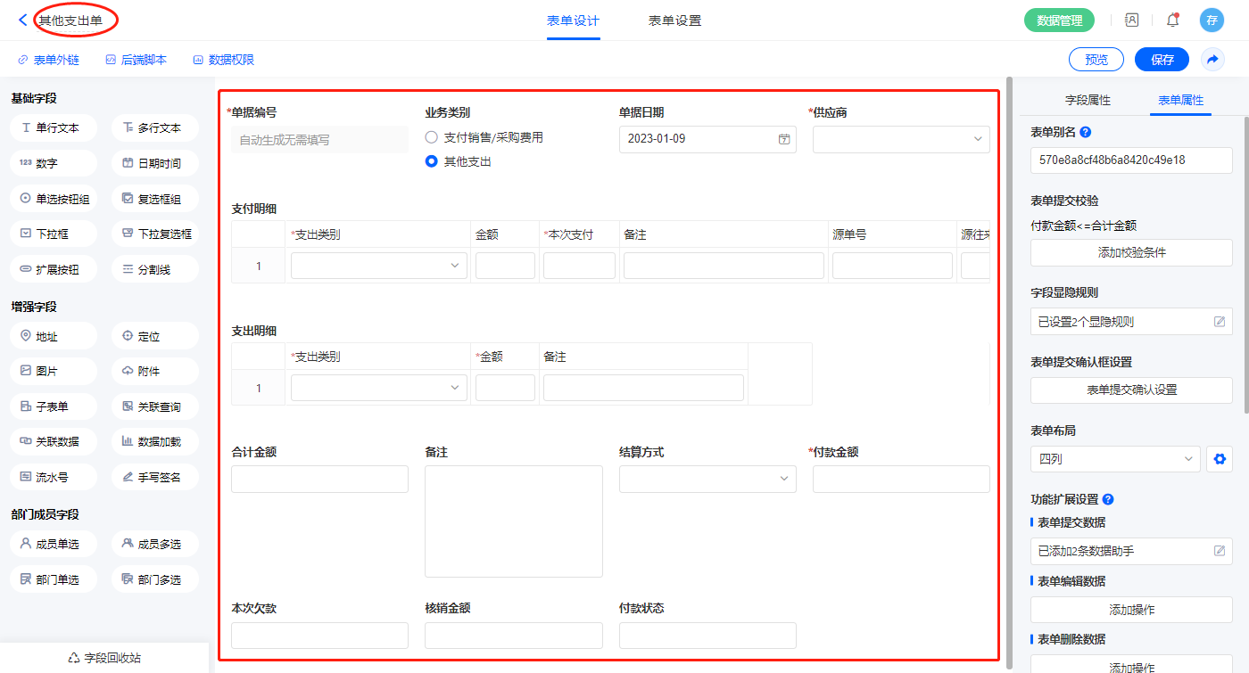 - 2.9、表单【其他支出单】字段及表单属性设置