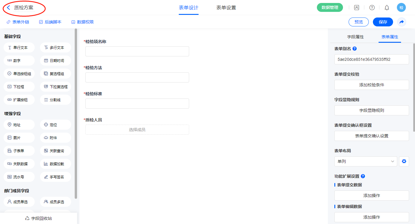 | 工艺路线名称 | 单行文本 | 工艺工序 | 子表单 |