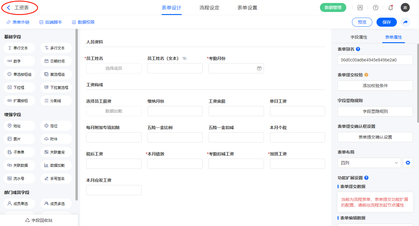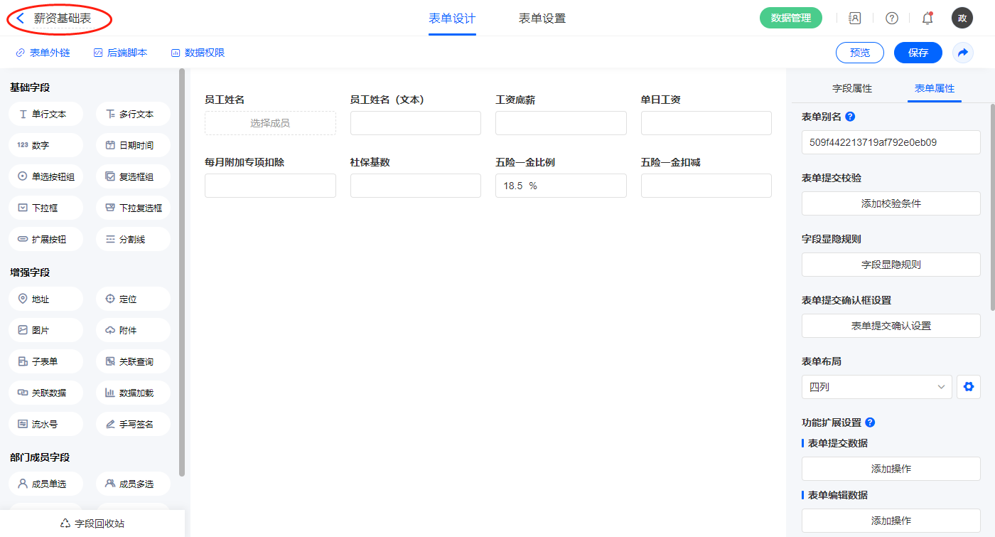 2.3、表单【新版个税计算器】字段及表单属性设置