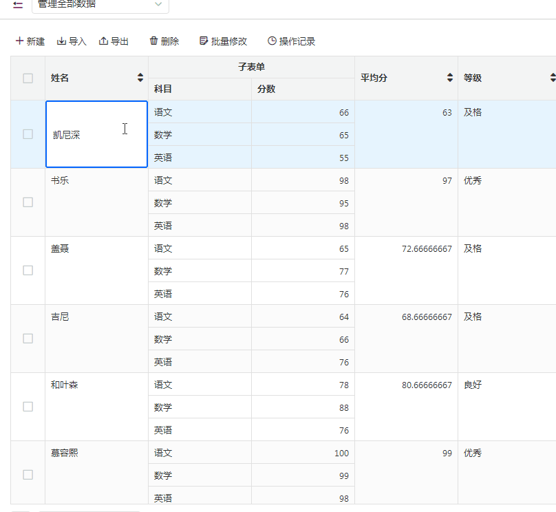 在电脑端编辑数据时,支持直接在表格上快捷编辑数据,无需点击数据详情。