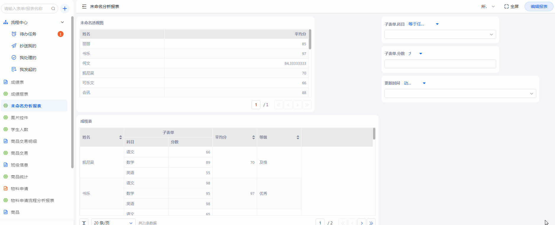 成员在报表统计表 钻取原始数据 的表格中支持快捷编辑数据