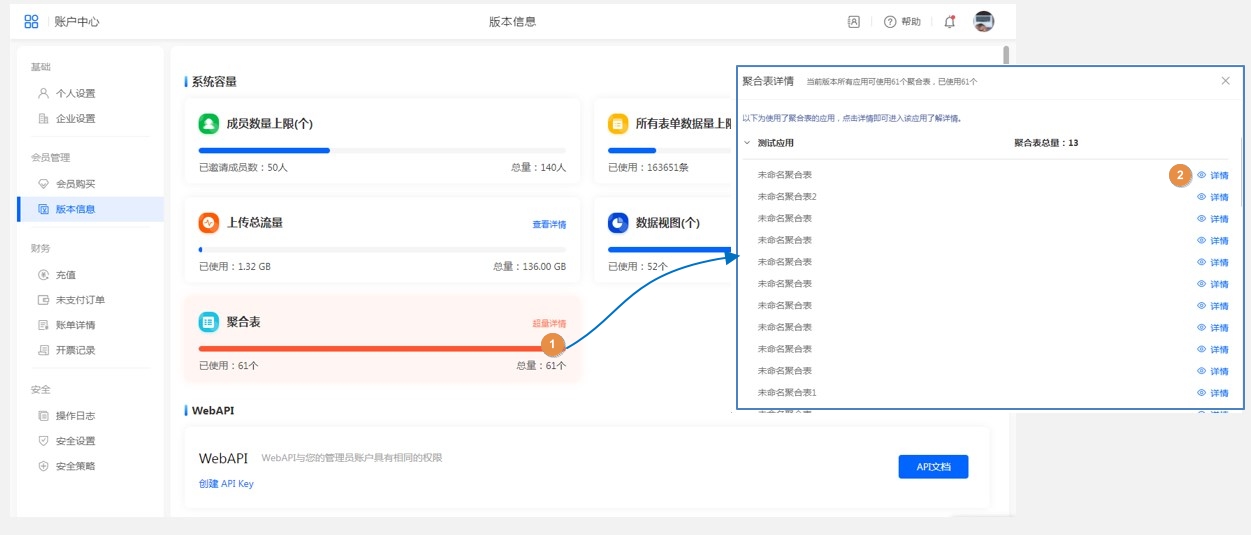 点击容量的[查看详情],可以查看对应功能权益的使用详情。