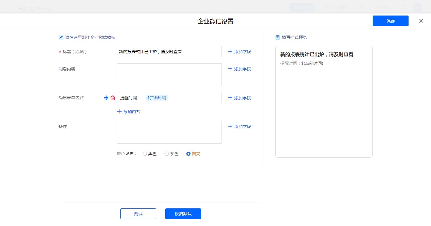 - 标题:必填,支持自定义文字,以及添加[当前时间]字段。