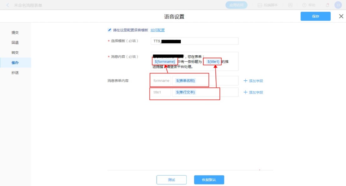 流程表单设置语音消息模板
