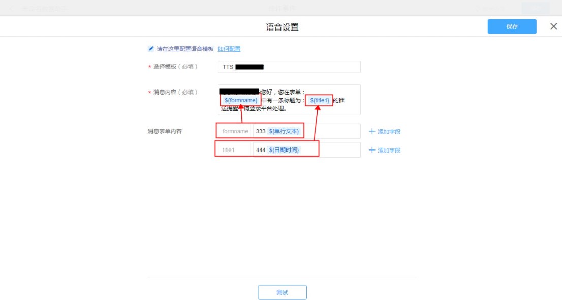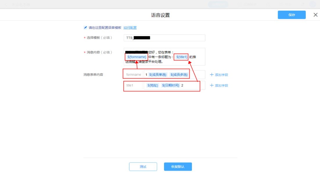 • 普通表单设置语音消息模板