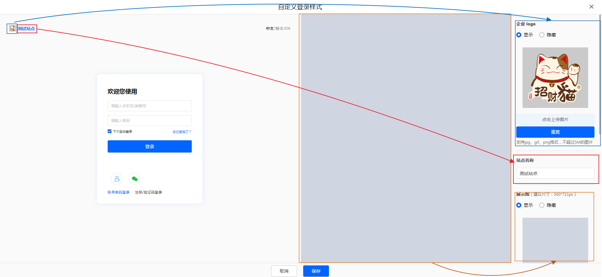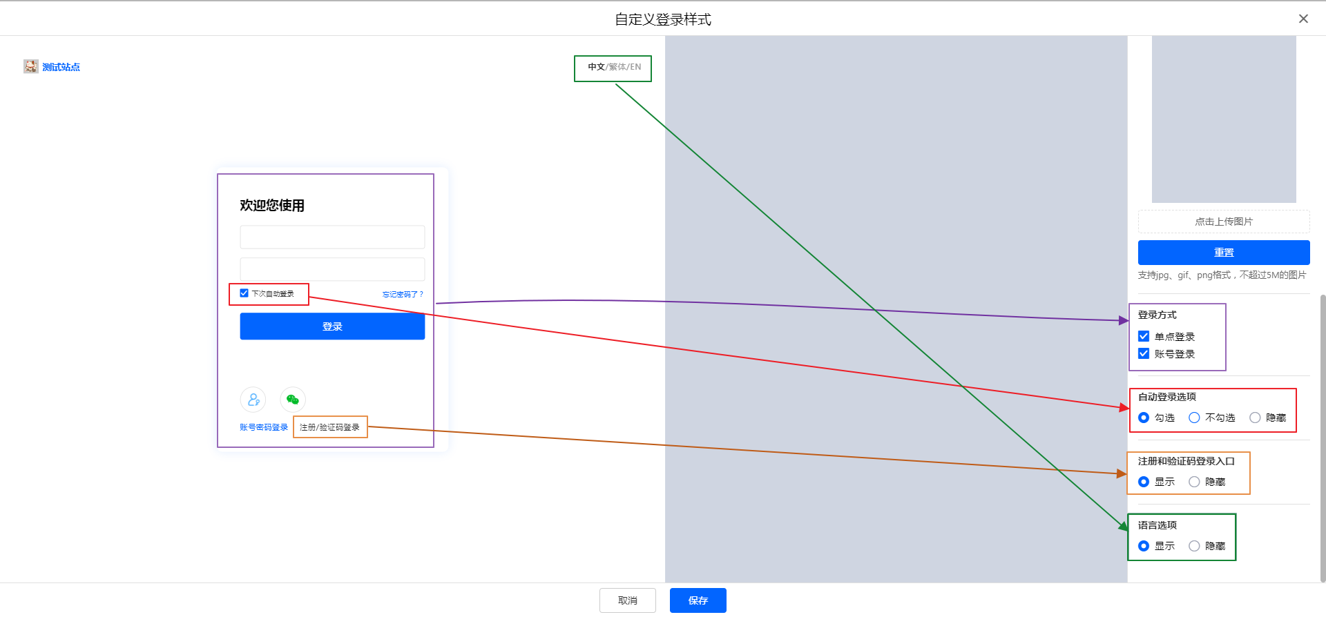 开启后进行自定义登录页的相关配置。