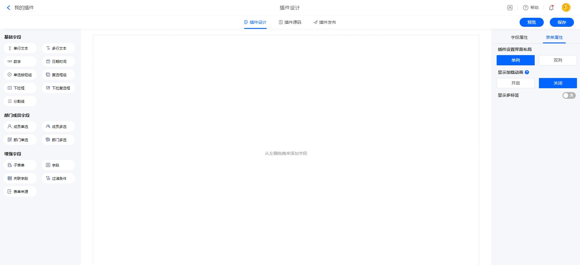 表单控件、表单属性、流程节点、报表菜单、计划任务等支持添加功能插件的位置