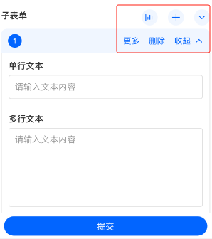 - 子表单添加、数据加载、展开/收起按钮放在界面上 操作更直观,之前在...里面。