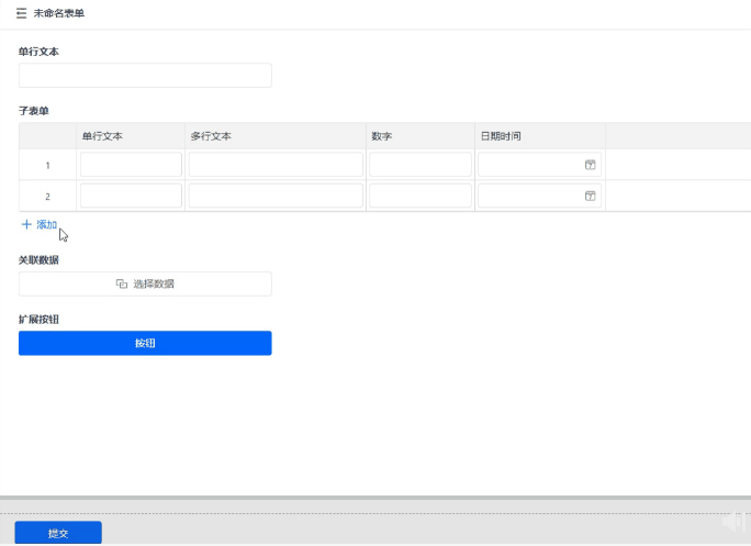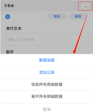 - 子表单行字段 支持数据加载,单行加载的数据只会填充当前行。