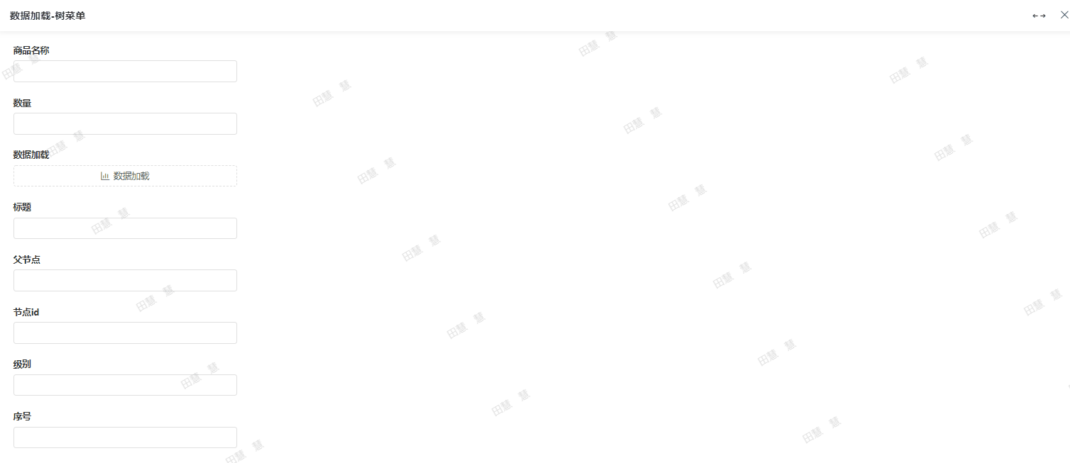 进入表单设计界面,拉取【数据加载】字段,字段属性>>显示模式选择【树菜单】,点击关联表单设置>>【数据加载设置】配置数据源 选择节点信息设置填充规则。