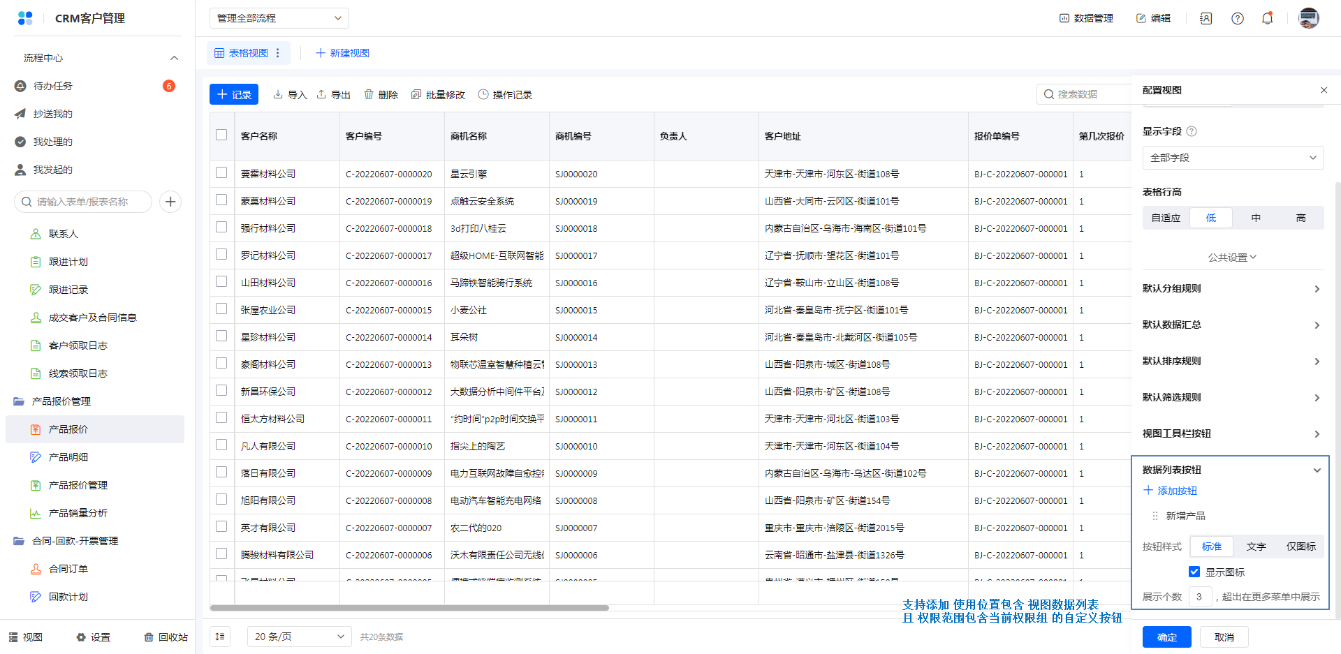 视图数据列表:勾选后,在对应权限组访问,操作:配置视图>>数据列表按钮,添加该按钮。