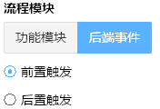 | 前置返回 | False:拦截流程操作 | 前端展示文本信息,为空无提示 | 根据json字符串,修改前端表单字段赋值与属性 |