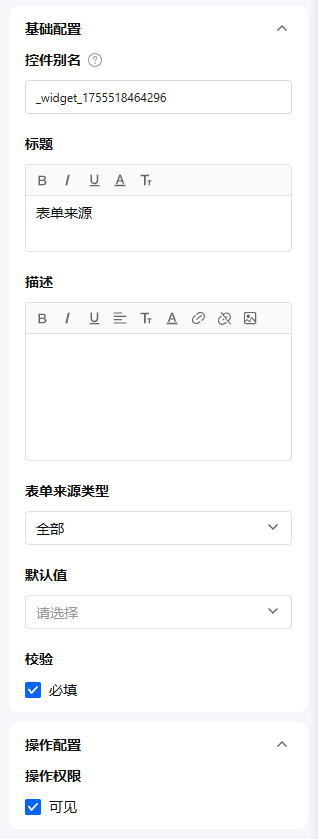 操作权限仅可设置字段是否可见,勾选即为可见。