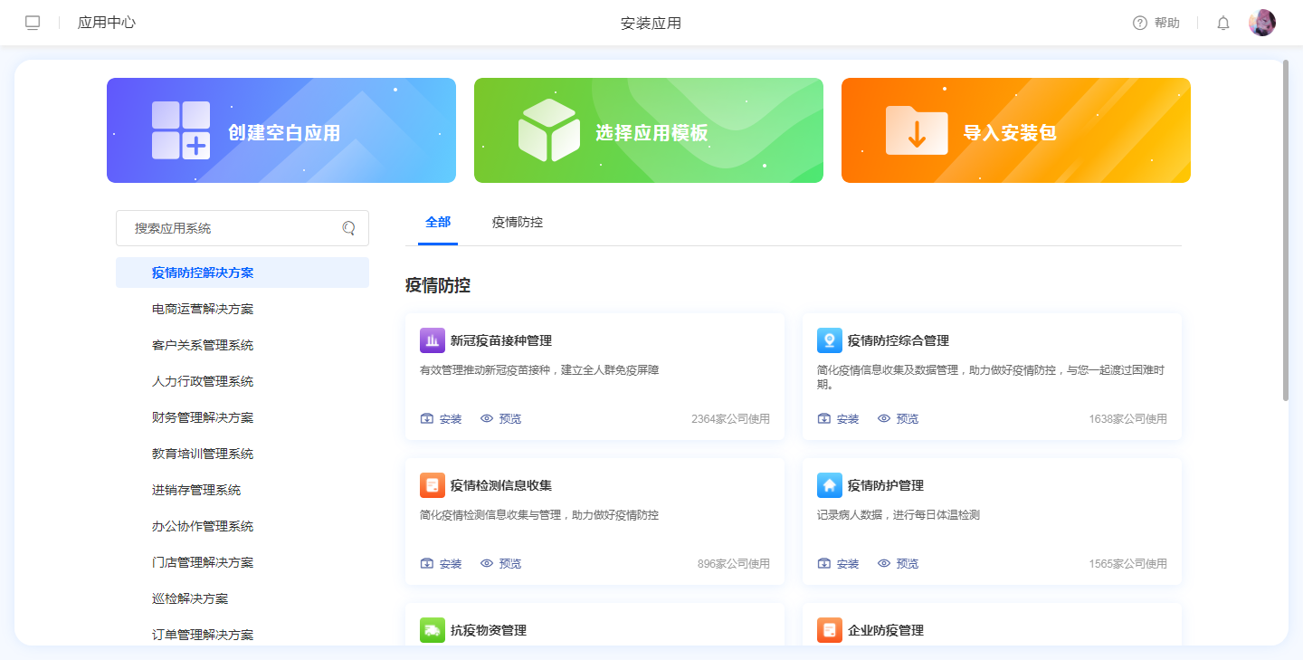 工知云应用中心有近50的标准应用,全部安装即可投入使用,同时还有近120个各行各业的模板应用供用户参考,可自行修改。