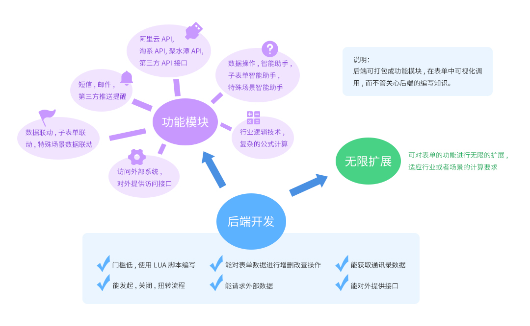 | 跨应用 | 可同账号下调用其他应用的数据;同账号下应用内复制表单可粘贴至任何一个应用 |