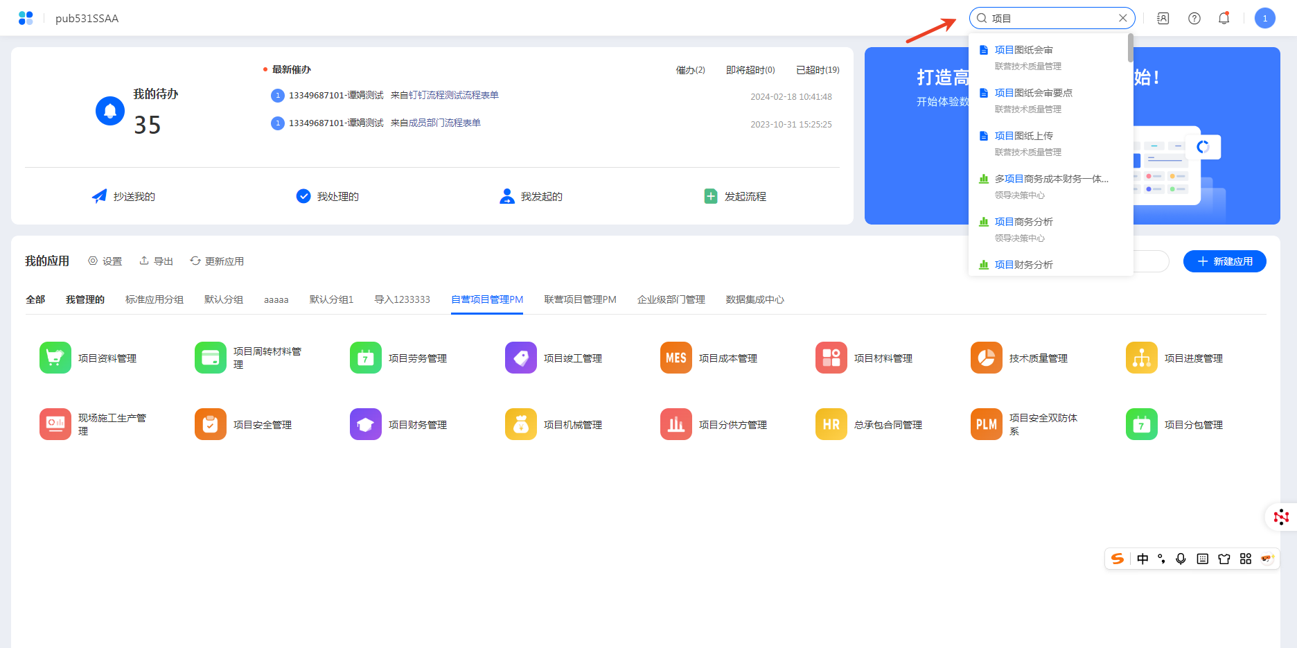 支持模糊搜索当前账号下所有表单/报表,以及应用。点击搜索结果即可访问。