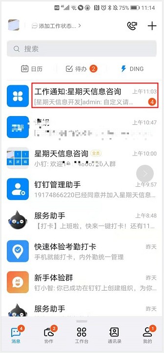 2、钉钉端要开启待办红点设置,以手机端钉钉为例: