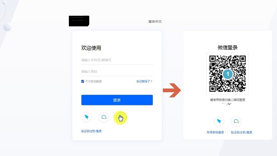 如果微信已经和平台账号绑定,可以通过微信扫码直接登录,也可通过平台账号的账号/邮箱/手机号登录。