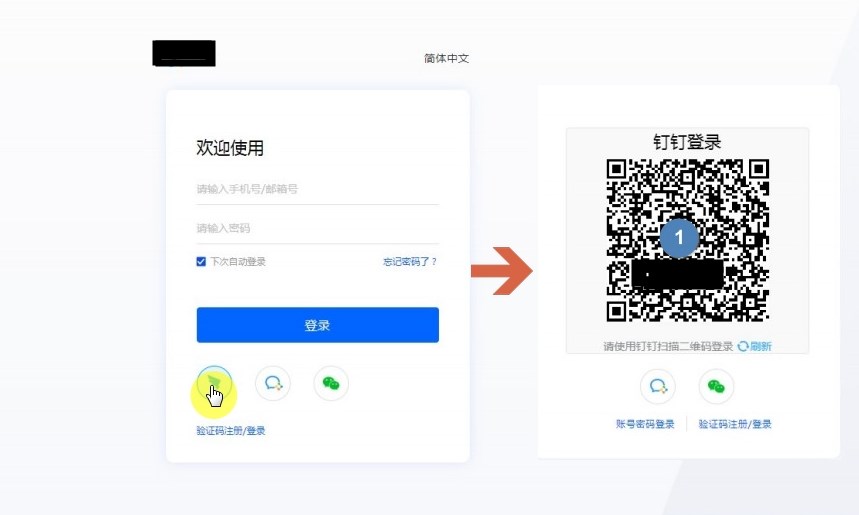 注意:企业微信扫码登录和钉钉扫码登录是成员模式。