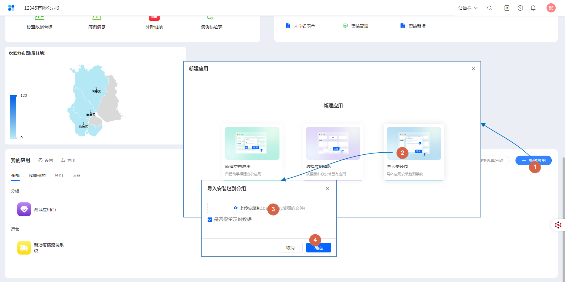 是否保留示例数据:如果安装包中带有示例数据,勾选此选项,在导入后会保留这些示例数据;不勾选则不带示例数据。